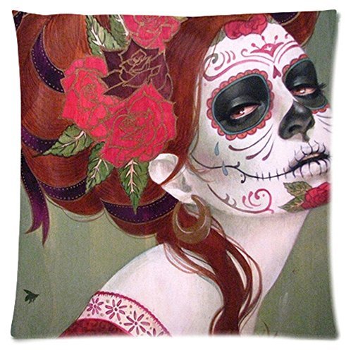 Cotton and Polyester Cushion Cover Pillowcases Pillow Cover with Day of the Dead Sugar Skull Art 18" x 18"