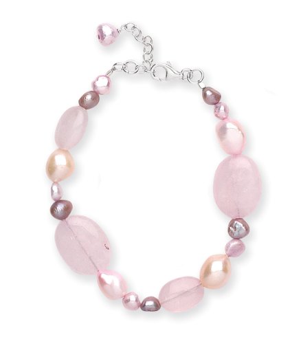 Goldmajor Sterling Silver, Pink Rose Quartz and Pink Freshwater Pearls Bracelet of 19.5cm with 3.5cm Extender