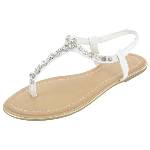 Sparkle in the sunshine with these gorgeous Chianti sandals from Pia Rossini. These women's sandals have faux leather straps have sparkling diamante detail for the glamourous look. The slip on flip flop design has an elastic ankle strap for a comfortable fit. A flat cushioned sole and rubber tread make them ideal for a shopping trip at the holiday resort, a day at the beach or an evening dance.Available in a range of colours and in UK sizes 4 - 8, you are sure to find a pair to suit your style.