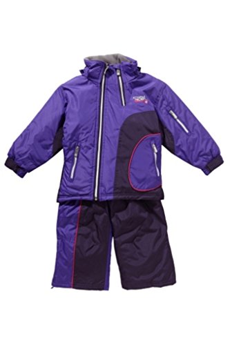 This set of daughter ski consists of: jacket Fleece lined collar. Zip-off hood. Long sleeves with elastic cuffs. Multiple zippered pockets. Zipper. pants Adjustable and removable straps. Multiple zippered pockets. Zip opening at the base. Integrated elastic lining at the base. Zipper. Material: 100% polyester Care: hand wash