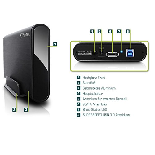 Interfaces:1 x USB 3.0 - 9 pin USB Type B ¦ 1 x eSATA-300 - 7 pin external Serial ATA, Compliant Standards:Plug and Play, Cables Included:1 x SuperSpeed USB cable - external ¦ 1 x eSATA cable - external, Included Accessories:Vertical stand, Enclosure Colour:Black, Interface Transfer Rate:5.0 Gbps (USB 3.0) / 3.0 Gbps (eSATA), Power Consumption (Active):24 Watt, Power Source:Included AC adapter, Power Device:Power adapter, Voltage Required:AC 120/230 V ( 50 - 60 Hz ), OS Required:Apple MacOS, Linux, Microsoft Windows
