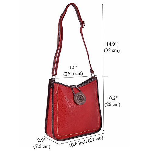 Ladies Women's Fashion Designer Celebrity Small Quality Faux Leather Shoulder Handbag Cross Body Bags. Button cross body bag: Stitching detailing Large wood button with loop over fastening Top zip closure Adjustable crossbody strap Back zipped pocket Internal zipped pocket Interior slip pockets Silver tone metal hardware Handle drop: max. 68cm Dimensions: H26cm x W28cm x D8cm