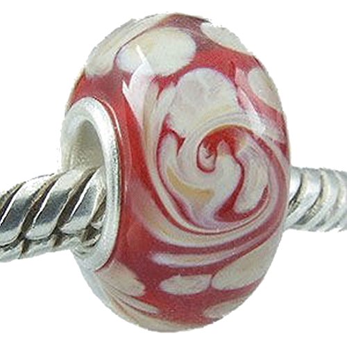 Solid Sterling Silver Single Core Slide On Murano Glass Swirl Pattern Bead, Hallmarked 925, Size 7X13 mm - Hole 4.5 mm - Weight 2.00 grams - will fit Pandora, Biagi, Chamilia and similar 3mm jewellery.