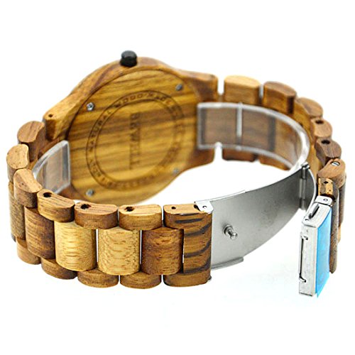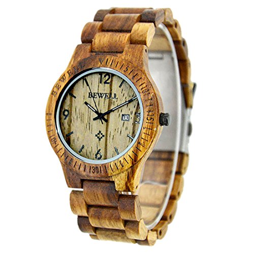 Product Description: Natural wood watch is handmade with 100 % natural bamboo material without paint,it is very lightweight and comfortable to wear.It is retro unique cool style handmade watch. It certainly has unisex appeal. Eight advantages of Bewell brand wooden watch: 1. Imported expensive wood, to ensure good material. (Red sandalwood, ebony, ebony, maple, zebra, ebony, gold Phoebe, thuja, bamboo, etc.) 2 hard texture, high density, good wear resistance, termite. 3.Texture patchwork, elegant and elegant fashion. 4. Fragrant aroma, refreshing, conducive to good health. 5. Market new products, unique style, highlighting the brand's unique charm. 6. The use of imported Japanese movement, quality assurance, excellence, to create industry brand. 7. Craftsmanship, each watch is unique, not just a watch, it is a living art treasures, with a collection value. 8. The first in the domestic industry, wood watch industry pioneer, mature technology and technology, quality assurance. Specifications: Materials: Bamboo Wood Item type: wrist watch color:Ebony maple, Zebrawood, multicolour,pink,Red pear Movement: Imported japan miyota 2036 quartz movement Water Resistant: the wooden watch is water-resistant, but we would not recommend submerging it in water or wearing it while swimming. Gender: Male or Female (Unisex). Package Contents: * 1 X Bewell Bamboo Wooden Watch * 1 X Original Box Notes: If the bamboo watch is too big for your wrist, you can take one or two joints out of the strap. Due to the use of 100% natural bamboo wood as a material, there may be some spots on the bamboo, This is not a quality problem. The bamboo watches are ordered in batches, and the natural colors are slightly different from each other, The watches may have some color difference.