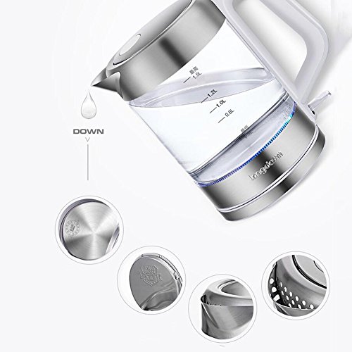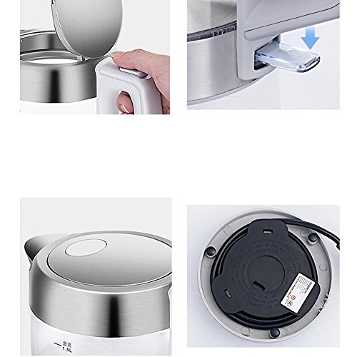 Please confirm the size and color when you make order.Box Contains1* Electric kettle1* 360 degrees charging base with wrap-around cable storage1* Instruction manual with details of guaranteeProduct description electric kettles makes it easy to boil water with attractive. The great performance features you'll appreciate year after year. Positives: 1. Brushed stainless steel with a handle that doesn't get hot. 2. Automatic shut off and keep warm function, that will keep the water warm for 2 hours. 3. 1.5 litre 4. Size: 230*140*240mmMaterial: glass, Power:1500WFeatures:Automatic power off,Quickly boil water,Intelligent anti-dryNOTE: 1.Do not leave still water in the kettle without drying. 2.Try to immersed the base in vinegar or clean it by lemon juice if it turned to a nasty color 3. If you meet any question about the product, please contact us feel free, and we will help you to solve this question. we will give 100% service.