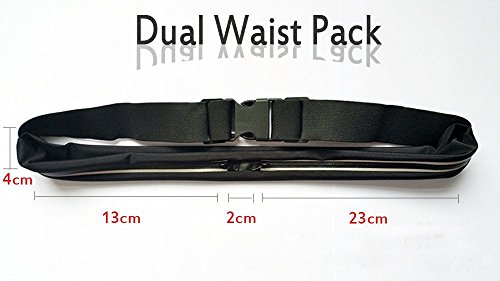 Features & Benefits: Two pockets design, lightweight and slim with extra storage grid separate your phone and cash, coin, keys or any other sharp things keeps your goods secure and protected. Leica waterproof material and sweat-proof function to better protect your mobile phone, make you feel more comfortable during exercise. Built in Reflective strip around Zipper for safe running in low light conditions. Easy access to ear phones and controls. Sports, cycling, mountain climbing, walking trip the best choice. Adjustable and removable Waist strap: 31.5"-38.2", the Stretch maximum length: 55 inch. Contents: - 1 x Outdoor 2 pockets Sports Bag - 1 x Running waist belts