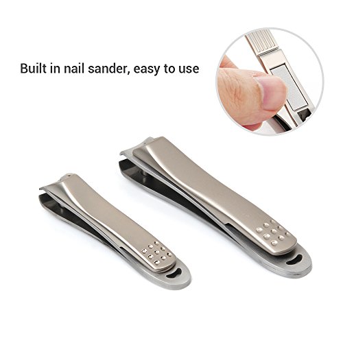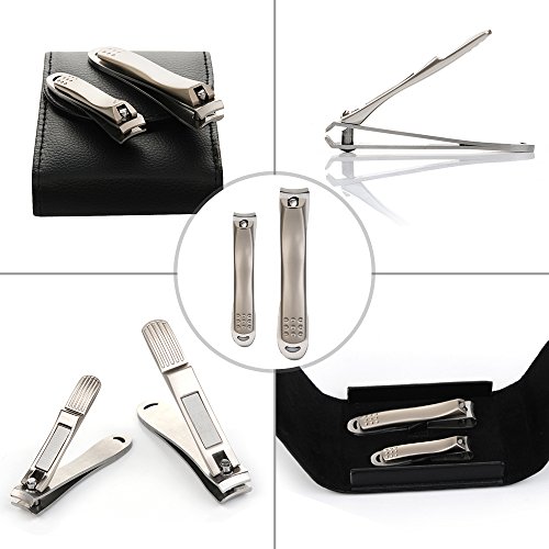 The professional and personal nail trimmer were perfectly aligned and sharp, cuts through the toughest nails life a knife through hot butter. Use:For best results, soak nails before clipping to soften. Flip handle up, turn and press. Clip nails straight across to avoid ingrown nails. Make sure not to trim painfully close to fleshy parts of fingers or toes as it may leave the area prone to infection. Care: Clean after each use. Main Color : Silver Material: Stainless Steel Weight: 45g Package Content: 2 x Nail Clipper 1 x Nail-clipper Case 1 x Packing Box Warranty: Top-notch Warranty provides 3-month worry-free warranty. Thus, if any issue occur during the process of using, please feel free to contact our cutomer service team through your order ID.