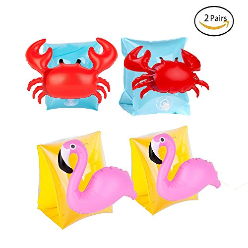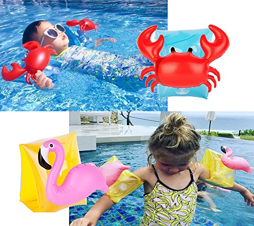 【Features】 - Adorable animals pattern that are very appealing to kids. - Easy and convenient to inflate and deflate, ultra lightweight and space saving for carrying or storage. - Portable and Lightweight with inflatable design, great for keeping your baby in the pools or shallow water. - Great for helping young swimmers build confidence in the water. - High visibility, bright material and design for increased pool safety. 【Specification】 Material: 6p Environmental protection PVC,non-toxic Size: 16x20x15cm / 6.3x7.9x6 inch Style:Crabs and Flamingos 【Package Included】 2 Pairs Arm Bands (Crab+Flamingo) 【Note】 1. this is not a lifesaving device, do not leave your kids unattracted while device is in use.