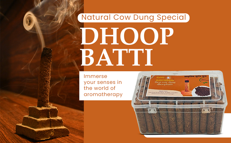 GAVO HARSHIDDHI Natural Cow Dung Havan Dhoop Batti offers 120 handmade, eco-friendly incense sticks crafted from pure cow dung and Ayurvedic herbs. These charcoal-free sticks emit a long-lasting havan fragrance that purifies your environment, promotes positivity, and enhances spiritual practices like puja and meditation. Sustainably sourced and traditionally made in India, they create a serene, toxin-free ambiance for mindful living.