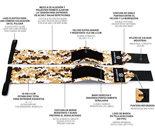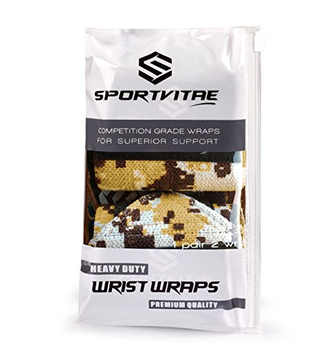 'Sports Wrist Elastic High Resistance 18 (45 cm) Heavy Duty Wrist Wraps | Crossfit | Weightlifting | Powerlifting | Kettlebells | Weight Lifting Support and Protection – Ideal For Wrists. Includes FREE Carry Bag, Desert Camo