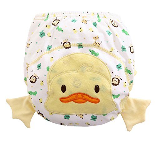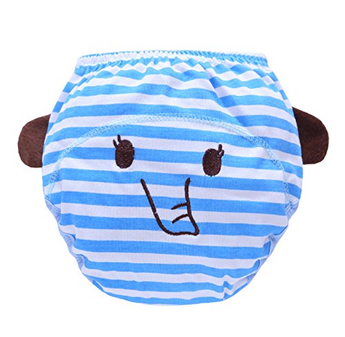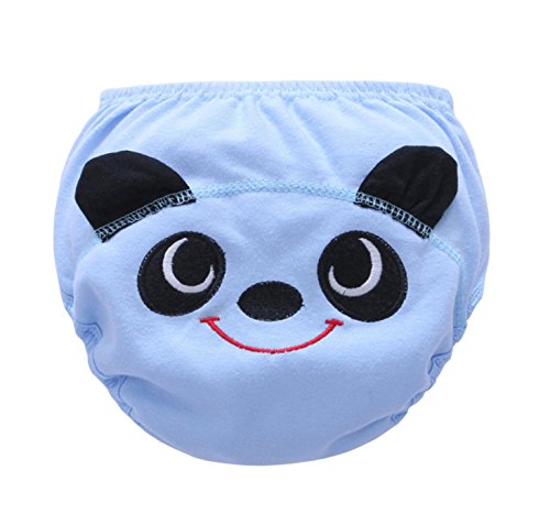 Feature:Material:Cotton,It has a waterproof terry material inside. Easy to wash and easy to take care.Durable, washable, reusable,comfortable to wear,stretches nicely.Effective to prevent wetting outside trousers, washable and softer than paper diapers, prevent baby diaper rash.Size: we have three sizes to choose for babies of different age and weights between 11-16kg.Machine washable, more environmentally friendly and practical compared to disposable training pants.A good washable reusable training pants to help Parents to save time and money.Size guide:Size------------------Waist(In/CM)----------Hip(In/CM)----------thigh(In/CM)----------Weight(kg)80(5-12months)-------- 13.77in/35cm-----------18.11in/46cm---------11.02in/28cm----------11kg90(12-24months)-------- 14.57in/37cm-----------19.29in/49cm---------11.42in/29cm----------13kg100(24-36months)-------- 15.75in/40cm-----------20.47in/52cm---------11.81in/30cm----------16kgNotice:The measurement may have inaccurate errors of 1 to 3 cm (0.39 to 1.18 inches).Please check the size before you buy it.There may be slight color deviation due to different displays.Package includes:5 * baby training pants