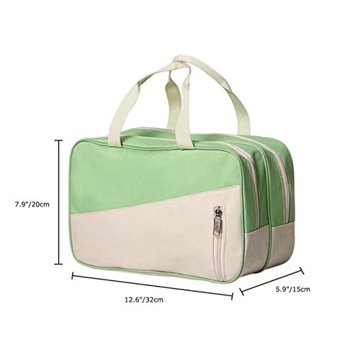 Material:600D Canvas Size:12.6*5.9*7.9in(32*15*20cm) Color:Green&Beige,Rose&Blue,Navy blue&White 3-color choice,simple pattern.suitable for unisex and all ages. Made of high quality 600D canvas material,waterproof,long lasting durable. Smooth zipper closure,easy to open and close.Tote soft handle carry,lightweight,convenient to take it anywhere. 2-Compartment design,double waterproof interior lining,seperate all your clothing from liquids,keep all items dry and clean. Large Capacity,main compartment well storage your make-up,cloth,basic travel essentials and etc.Side zipper pocket place tissue,card or keys. Multifunction,can be used as a cosmetic box bag,hand bag gym bag travel bag for beach,gym,spa.climing,fishing,swimming and other outdoor activities. Package Included: 1*Tote Swimming Bag