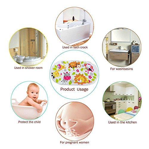 Marque: QJONKEMatériau: PVCForme: ovaleMotif: un côté Peinture à dessin animéPaquet inclus: 1 paquet de bain pour PC Taille: 69cm L x 39cm WFonction: Absorption de poussière, résistant aux taches, sûre et antidérapante Usage: Salle de bains,Salon, Cuisine, Hôtels, Piscines, Salle de Sauna, Gym, etc.Caractéristiques du produit1. Utilisation de matériaux spéciaux en PVC, inoffensifs pour le corps humain, doux et élastique, nettoyage durable et facile2. Le côté arrière des tapis de bain avec des ventouses fortes, a un meilleur effet de l'antidelivité que les autres.sûr et confortable pendant le temps de la douche3. Modèle de dessin imprimé varié, qui est harmonieux avec la coloration de votre pièce.Le motif mignon et beau décorent parfaitement la salle de bain et vous offre aussi du temps heureux pendant le bainNotePour votre sécurité, votre santé et votre confort, veuillez noter:1. Veuillez nettoyer votre sol avant d'utiliser2. S'il vous plaît, carrelez le tapis sur un plancher plat et appuyez sur ou sur l'estampe pour le fixer au sol pour plus de sécurité3. Nettoyez le tapis de douche régulièrement, conservez-le propre