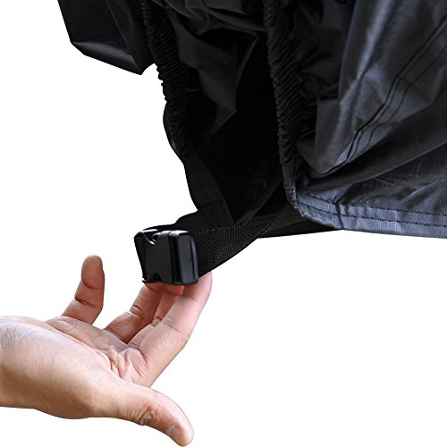 Specifications:Item Name: waterproof motorcycle coverBrand: CaRSunCondition: New and High QualitySize: dimensions of 265*105*125cmMaterial: waterproof 150D Oxford clothColor: BlackFeature:High quality waterproof 150D oxford cloth, treated with durable water repellent and waterproof coating, stable and ultra-tight, improved weather protection, this cover will protect your motorcycle against rain, dust, heat, tree sap, damaging UV rays, inclement weather & scratches with top to bottom coverage. Lockholes & elastic band & windproof buckle. The front wheel position increased 4CM copper anti-theft lock hole.The bottom of motorcycle cover arounds 2 CM high elastic band. The rear wheel position is provided with a windbreak buckle, which help lock your motorbike and fix well.Comes with Storage bag. this bag will organize motorbike cover perfectly. never worry about storage problem when this breathable motorbike cover is not in use.Suitable for most Motorbikes. With dimensions of 265*105*125 cm, this outdoor motorcycle cover fits most motorcycles, motorbikes, ATV, and scooters (Please measure your motorbike before order in).Package includes:1 * waterproof motorbike cover1 * carry bagWorry-Free WarrantyAt CaRSun Auto Accessories, we believe in our products. That's why we back them all with an 12-month warranty and provide friendly, easy-to-reach support.