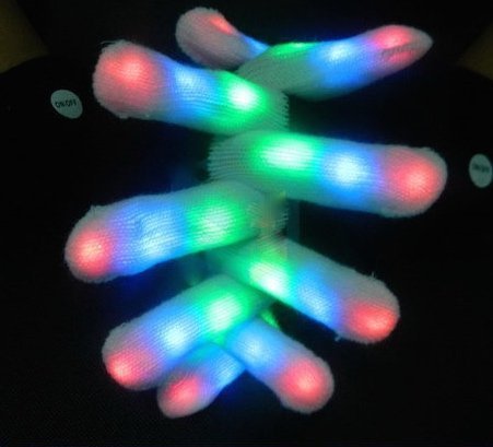 Do you want to put some glow on your finger? Do you want to make your party more fun with smart lighting? Do you want to emphasize your appealing hand moves when dancing? These LED gloves can add more shinning point to your concert, stage acts, magic etc. 6 Lighting Modes and 3 Colors for AllKinds of Parties, Concerts - Blue, red, green fast blinking - Blue, red, green slow blinking or breathing - Blue, red, green solid - Blue flash (just at base of finger) - Green flash (just on middle part of finger) - Red flash (just on fingertips) Wide Applications - Dance routines, stage acts - Magicians - Cheerleaders - Actors - Parties, Concerts - As a safety precaution for high visibility at night Specification: Length: about 9.65 inches Middle finger length: 3.54inches Palm width: 4.53 inches Battery: 2 x CR2016 (included and Replaceable) Note: Please remove the insulation sheet before using. Package Included: 1x Pairs of LED Light Gloves