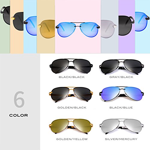 WISH CLUB Aviator Sunglasses WISH CLUB Aviator Sunglasses have a filter that works to prevent the glare from reflecting on flat surfaces (water, snow, road pavement) which interfere with vision. Polarized sunglasses are designed to reduce the glare from surfaces like water, snow, and glass. They can be highly useful for sports, driving, and fishing by helping the participant in these activities to see more clearly. Feasures & Benefits: 1-Perfect For All Activities. Driving, Sports, Cycling, Fishing, Golf, Running, and all other rugged outdoor adventures! 2-Glare Eliminating, High Definition Vision. POLARIZED Lenses provide maximum HD vision and decrease sun glare. 3-Rugged and Tough. Metal Frame with Polycarbonate Lenses can keep up with you. 4-Easy Cleaning. Hydrophobic layer makes for easy cleaning. Pckage Includes: 1 * WISH CLUB Polarized Sunglasses 1 * Case Box 1 * Glasses Cloth 1 * Glasses Bag 1 * Polarized Sunglasses Test Card Tips 1- Nice gift package, making it a wonderful gift idea for your friend! 2- To avoid damage, never clean your sunglasses with paper towels or clothing, and also avoid using household detergents or soaps,just use clean water and included cloth. 3- Do not maintain the sunglasses in such bad environment of high temperature or long tme damp, to avoid deformation. 5.How to recognize POLARIZED glasses? - Before you wearing our glasses, the fish pattern on enclosed polarized test card is hidden, while with our glasses the fish is visible.
