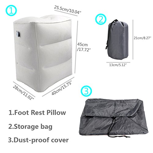 Material: PVC Size: As picture show Features: 1. Good quality and environmental friendly material, healthy and hygienic. 2. Quickly unfold for easy assembly and collapse flat to pack away when not in use. 3. Help your feet and legs get rest after tiring work, or long-time travel on the train or airplane. 4. It can be used as kid's bed to lay down flat on flights or as a chair while waiting at the airport. 5. Improve your blood circulation and relieve pressure by raising your legs. 6. You can blow air into the air valve with your mouth or inflator. 7. Help in reducing the risk of DVT (Deep Vein Thrombosis), in relieving back pain since sitting for long period of time Package include: Foot rest pillow*1pc Attention: 1.As different computers display colors differently, the color of the actual item may vary slightly from the above images, thanks for your understanding; 2. The size is hand-measured, please allow a slight deviation within 2 cm. Please don't hesitate to contact us if you have any questions! We will always to provide you the best customer services.