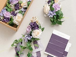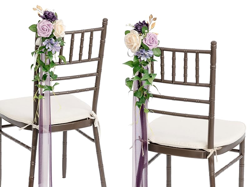 Ling's moment Wedding Aisle Pew Flowers Chair Decorations Artificial Flowers Arrangement with Chiffon Ribbon 8pcs Lilac Purple Gold for Ceremony Chair Back Floral Decor Reception Church Party Outdoor