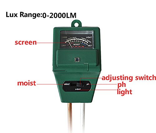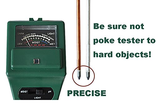 Great 3 in 1 soil meter:Place soil meter in the root soil of the plant, then flip the switch to either light/moisture/PH to see the screen. To get better readings, I suggest pushing it all the way down to within 1-2inches from the top. And be sure to test in several places surrounding the plant, taking the average of the readings. With color coded the reading system, the screen is easy to read and understand. Tips:Don't stay the probe in the soil for a long time;Don't touch the probe against any hard objects to avoid being damaged;Please wipe the dirt off the probe after using each time;Take good care of the product after using, and don't test pure water in case of being inaccuracy;