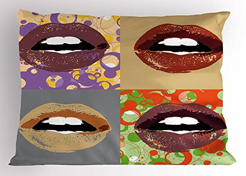 Kiss Pillow Sham, Dark Colored Lipstick on Different and Abstract Frames Pop Art Inspired Girlie Design, Decorative Standard Size Printed Pillowcase, 20X30 Inches, Multicolor