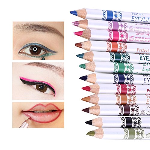 Weicici White Wooden Pearl Shimmer Eyeliner & Eyeshadow Pencil Set 12 colors Product type: eyeliner & eyeshadow pencil. Size: 15cm (including cap) per stick. Features: soft material, writing smoothly. 12 pearl shimmer colors, suitable for all occasions. Package includes: 12pcs* eyeshadow pencils.