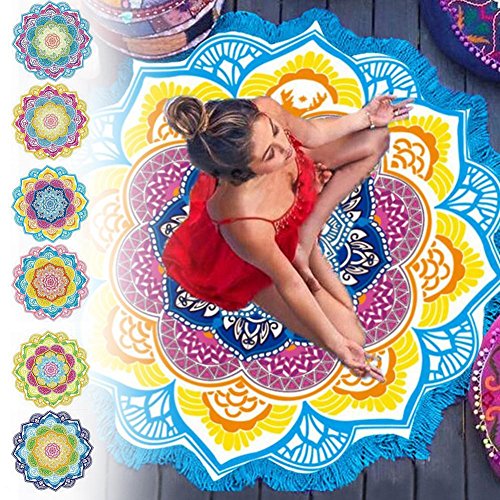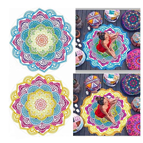 Tassel Cute Chic Indian Bohemian Mandalas Beach Towel Tapestry Colorful Lotus PrintedChic Indian Bohemian Mandalas Beach Towel Tapestry Tassel Lotus Printed Bath Towels Wall Hanging Round Yoga Mat Camping BlanketFeatures:Can wear it to Spa, Beach, CampingIntricate design, soft, breathable, Smooth and comfortableMakes a great wall hanging, tablecloth, beach cover up, Dorm, couch cover or window curtainGreat for travel, home use or other home Decor purposesSpecifications:Material: microfiber polyesterColor: As shown in the picturePackage Includes:1x Indian Bohemian Mandalas Beach Towel