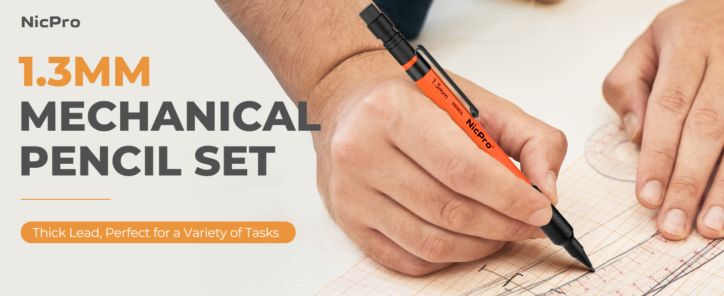 The Nicpro 3 PCS Mechanical Pencil Set features 1.3mm thick 4B leads housed in weatherproof metal barrels designed for heavy-duty outdoor and professional use. With anti-skid grips, waterproof markings, and a comprehensive refill kit, this set is engineered for precision drafting, woodworking, and all-day writing in any environment.