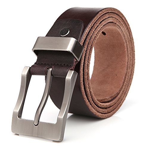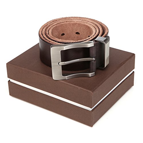 Tekon New Business Men Split Leather Belt 1.5" Cowhide Vintage Classic Jean Pin Buckle Belts 41"- 49" Full Length This use split leather that is thick and durable and will ensure your belt lasts for years. Traditional colours and a simple design produce a classic looking belt, lent a slightly vintage feel by the leather's subtle marbling. The fine leather is complemented by a simple chromed buckle, embossed with the Tekon brand name. This belt's 38mm width works great with jeans or casual trousers. Tekon also offer various styles of belts in different widths and colour designs. Size chart reference: Measuring size based on head to the tail of belt (not including the belt buckle) 41inch--105cm 43inch--110cm 45inch--115cm 47inch--120cm 49inch--125cm As a rule of thumb your belt size needs to be approx. 2" (5cm) bigger than your actual waist size. NOTE:1.Many trousers do not sit on your waist but slightly lower therefore its important to take the measurement with your trousers on and where the belt is intended to be worn i.e. the measurement may be nearer your hip measurement than your waist.2.Bearing this in mind please use the sizing image above to help you find which belt to order.3.If you are unsure of which size to buy we would always suggest ordering a slightly larger belt rather than one that might just fit as you can always add an extra hole but you cant extend the length of the belt. Package including:1 X Leather Belt1 X Punching Needle