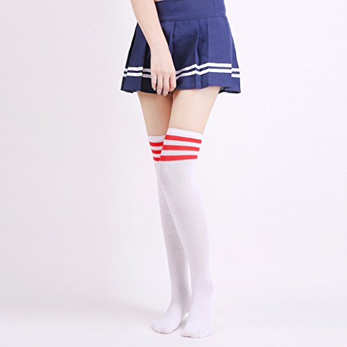 Features* Stripe pattern,cute and unique long socks.* Deodorant, breathable, antibacterial.* Good elastic, very comfortable to wear in the legs.* Women Girls Cotton Socks Knee Thigh High Long Tube Socks.Colors: As shown in the pictures.Size: one size fits most.Material:Cotton.Package includes: 1 pair * Long Socks.