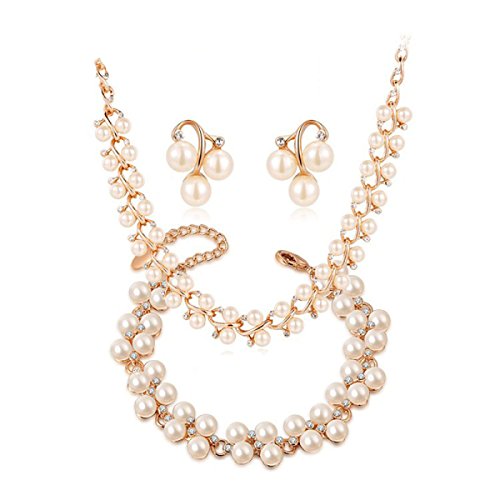 Fashion Features Rose Gold Pearl Set Necklace Earrings,RoseGold-OneSize