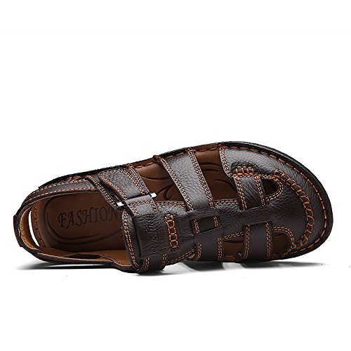 The summer sun is high,and it's that time of year when sandal becomes a shoebox staple.Yaer Men's Leather Sandal is new men's leather sports sandal in 2018.It fulfills the performance requirements of the safety category.It opens and closes quickly and easily. High-quality full-grain cowhide leather is used for the upper.This material is wear-resistant and breathable.It stands out for its excellent abrasion resistance, a good air circulation and is flexible and shape-retaining.It is slip-resistant and offers perfect grip even on wet surfaces.UK------EUR---(Foot Length Foot width)UK6.5 = EU39 =(Foot length 245mm=96.45in Foot width 93mm=36.61in)UK7 = EU40= (Foot length 250mm=98.42in Foot width 93mm=36.61in)UK7.5= EU41=(Foot length 255mm=100.39in Foot width 96mm=37.79in)UK8= EU42 = (Foot length 260mm=102.36in Foot width 96mm=37.79in)UK8.5= EU43 =(Foot length 265mm=104.33in Foot width 98mm=38.58in)UK9 = EU44 = (Foot length 270mm=106.29in Foot width 98mm=38.58in)UK9.5 = EU45 = (Foot length 275mm=108.26in Foot width 100mm=39.37in)UK10 = EU46= (Foot length 280mm=110.23in Foot width 103mm=40.55in)UK11= EU47 = (Foot length 285mm=112.20in Foot width 105mm=41.33in)UK12 = EU48= (Foot length 295mm=116.14in Foot width 110mm=43.30in)Warm Tip:Choose a size bigger specially if you have a wide foot.