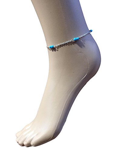 Turquoise Anklet Slim Stainless Steel Chain with 4mm Stone Beads - Adjustable Size : 9-11 inches