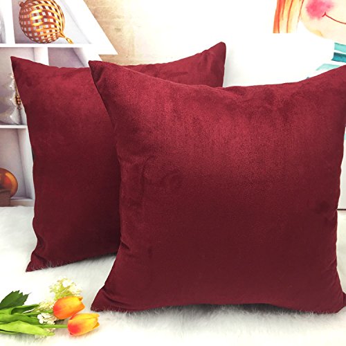 Pack of 2,Velvet Suede Soft Solid Color Decorative Square Throw Pillow Covers Set Cushion Cases PillowCases for Sofa Bedroom Car 18 x 18 (Burgundy)