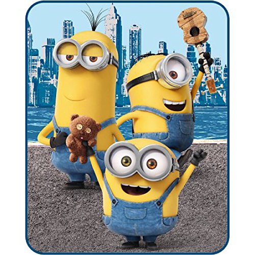 Your child will love snuggling up with this Despicable Me Minions silky soft, plush throw. Great for bedtime as they drift off to sleep and follow Stuart, Kevin and Bob on a road trip to New York City. This silky soft, plush throw is cozy and warm and is perfect for watching TV, nap time, a quick trip to the Market, or even taking along on family road trips to keep you little one warm and cozy. Throw is 100 percent polyester, which makes washing and drying a breeze for busy parents.