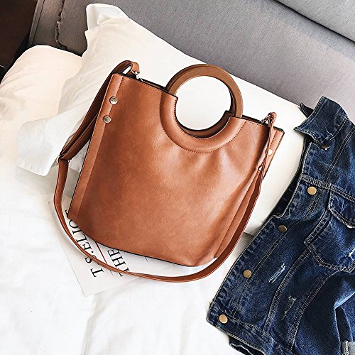 Style: Women's handbagFabric texture: PULining texture: polyesterBag shapes: square vertical sectionBags trendy style: handbagOpening way: zipperPopular elements: wooden ringPackage internal structure: sandwich zipper bag, document bagStrap root number: singleBag size: MediumPattern: pure colorStyle: KoreanProcessing methods: soft surfaceHardness: MediumPick up parts: hard to handleColor: green, black, pink, brown