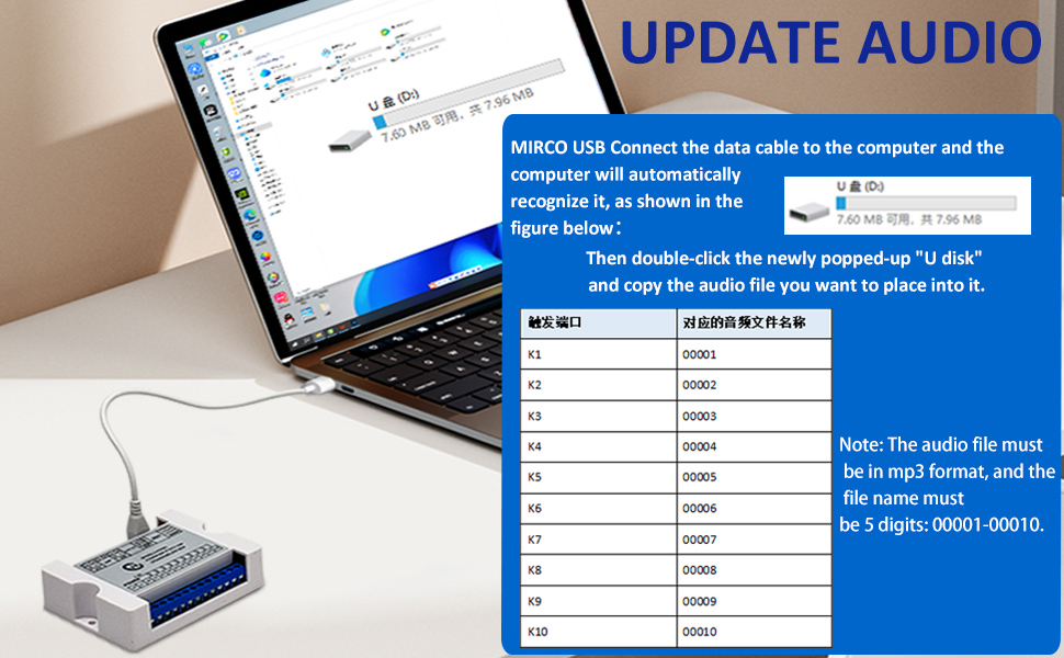 The 80W Voice Playback Module with CH358D chip delivers powerful, high-fidelity sound through a robust amplifier and 10 trigger ports for flexible playback control. Featuring 8MB memory and USB connectivity, it supports easy MP3 file transfers and multiple playback modes, making it ideal for industrial broadcasts, voice prompts, and alarm systems in demanding environments.
