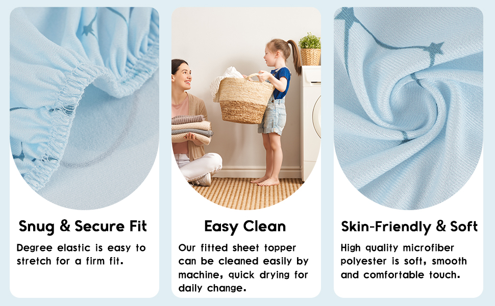 The YOOFOSS Toddler Bed Sheet Set is soft, breathable, and fits a toddler mattress well. The fabric feels gentle on my child’s skin and remains cozy after multiple washes. However, it’s slightly thinner than expected and could be more durable. Overall, a good option for everyday use, but not the most long-lasting.