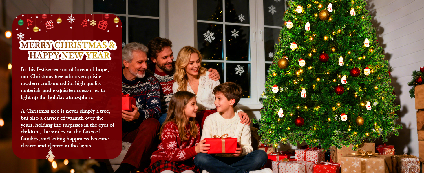 The SINCHER 6ft PreLit Christmas Tree features 1400 flexible PVC branch tips and 350 dual-color LEDs with 9 lighting modes, offering a customizable and vibrant holiday centerpiece. It includes 20 seasonal ornaments and a sparkling topper, all supported by a durable foldable metal stand with enhanced stability for easy setup and long-lasting use.