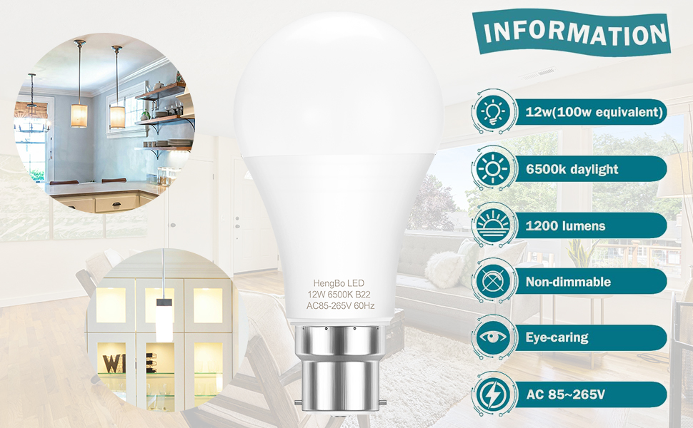 This 4-pack of HengBo LED Bayonet Bulbs delivers powerful 1200 lumen brightness at a crisp 6500K daylight white, replacing traditional 100W halogen bulbs while consuming only 12W. Featuring a standard B22 base for easy installation, high color rendering (CRI 85+), and advanced heat dissipation, these energy-efficient bulbs save up to 88% on electricity bills and provide instant, stable illumination ideal for diverse indoor settings.