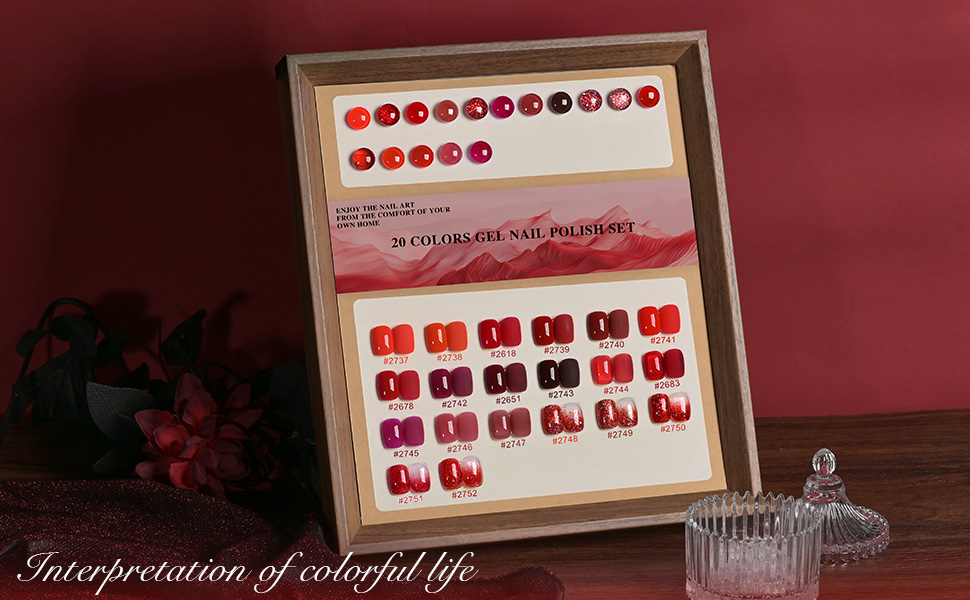 The GAOY 23 Pcs Gel Nail Polish Kit offers 20 vibrant red glitter gel polishes plus glossy and matte top coats and a base coat. Designed for home DIY nail art, it cures in 60 seconds under UV light and delivers up to 4 weeks of durable, chip-resistant wear. This low-odor, toxin-free formula is FD&C compliant and SGS certified, combining professional quality with safe, long-lasting beauty.