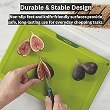 The Joseph Joseph Folio Icon Cutting Board & Knife Set is an 8-piece kitchen organizer featuring four color-coded polypropylene boards and four Japanese stainless steel knives with integrated rests. Designed for hygienic food prep, it includes a slim, non-slip case for space-saving storage, durable knife-friendly surfaces, and easy maintenance, making it a top-tier choice for modern kitchens.