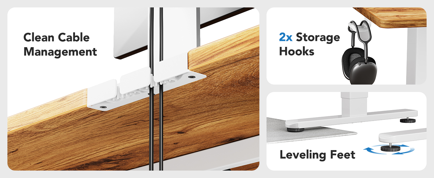 | Additional Features | Whole Piece Desktop, Electric Height Adjustment, 4 Height Memory Settings, Stable T-Frame |