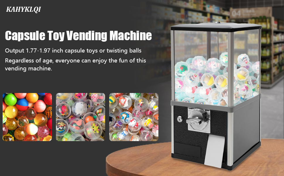 This 25-cent coin-operated vending machine combines a sleek black base with vibrant capsule toys visible through a clear window, holding up to 200 items. Built with durable metal and ABS, it features secure coin storage with a safety lock and an easy-to-use dual coin slot system, making it perfect for game and retail stores aiming to enhance customer engagement and maximize space.
