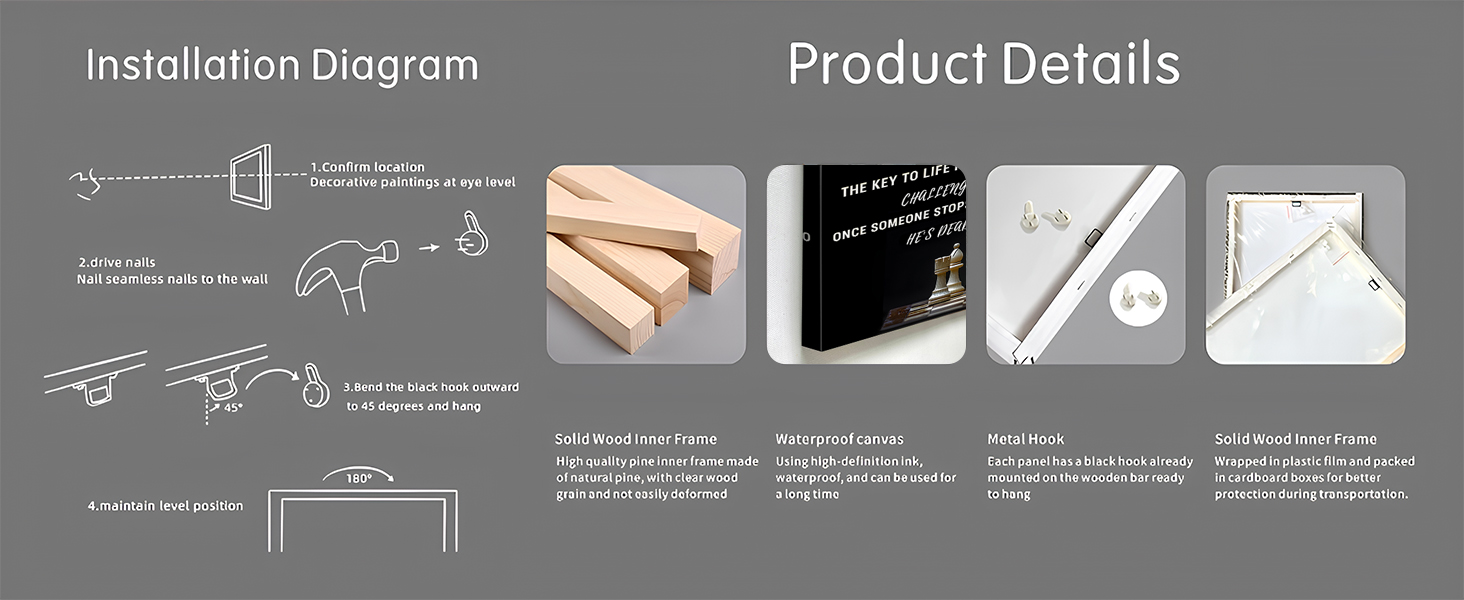This 24x48 inch black and white tiger chess canvas print features premium Giclée technology for vibrant, waterproof, and UV-resistant artwork. Ready to hang with a sleek frame and hook, it’s designed to add a bold, motivational touch to offices, living rooms, or any modern interior.