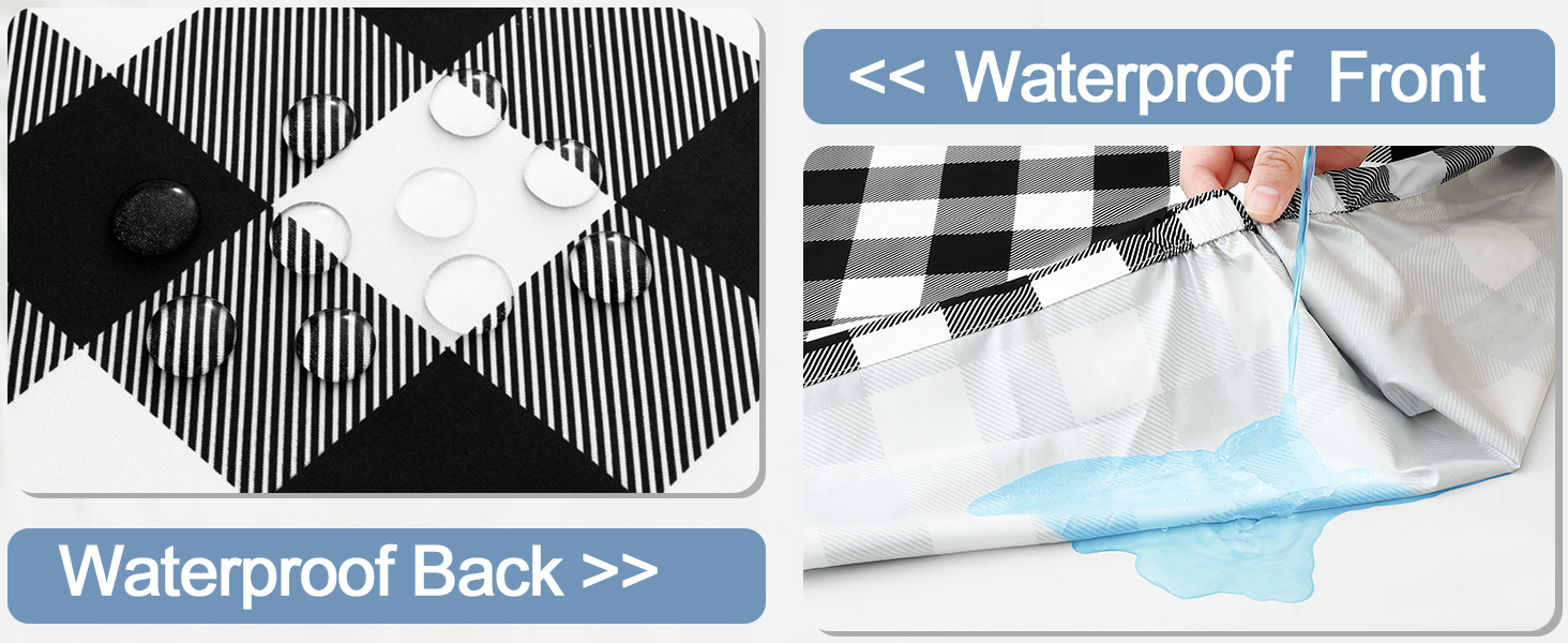 The Smiry Picnic Table Cover set includes a waterproof, elastic-fitted tablecloth and two bench covers designed for 8-foot rectangular tables. Featuring a double-sided waterproof TPU layer, tear-resistant polyester fabric, and a secure elastic edge, it offers durable, windproof protection. Machine washable and stylish with a classic black & white buffalo plaid, itβs perfect for camping, picnics, and outdoor events.