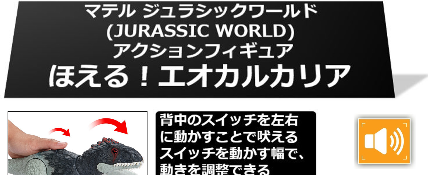 簡単に変えるエオカルカリアのフィギュアはおそらくこれしかないように思います。鳴き声がそれなりにかっこいいのですが、本物の恐竜の鳴き声って、こんな「ガオーッ」って感じだったのかなと、これを触りながら考えちゃいました。