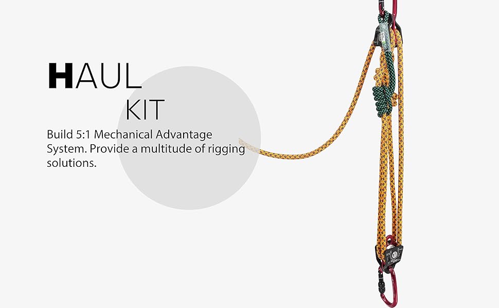 The GM CLIMBING Haul Kit features two 40 kN micro double pulleys, screw lock oval carabiners, and durable nylon slings to create a 5:1 mechanical advantage hauling system. Certified for safety and designed for versatility, it supports over 100 rigging configurations including rescue, tensioning, and load releasing. Compact and lightweight, it’s optimized for quick rope setup with rotating side plates, making it the ultimate tool for climbers and rescue professionals seeking efficient, high-performance hauling solutions.