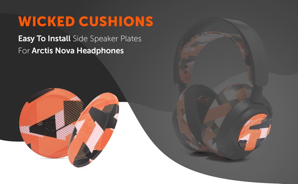 WC Side Speaker Plates For Arctis Nova Headsets, Made by Wicked Cushions | Fits Arctis Nova Pro Wireless/Pro Wired/Nova 7 / 7X / 7P | Designs Perfectly Match WC Headbands & Earpads | Orange Prism