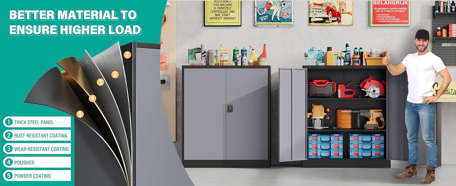 The SISESOL Small Metal Cabinet is a 36-inch tall, all-steel storage solution featuring a reinforced welded frame, 4-tier adjustable shelving, and a robust 3-point locking system with spare keys. Designed for quiet operation and durability, itβs perfect for home, office, or garage use, combining security and organization in a compact footprint.