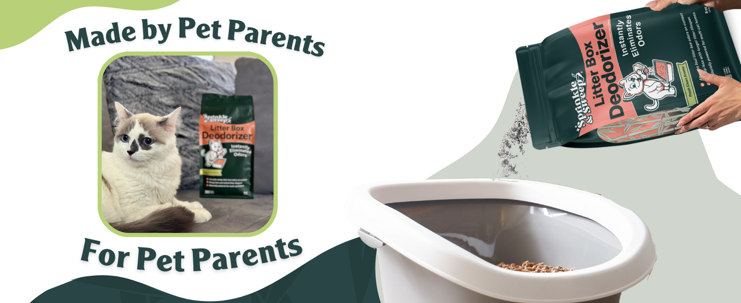 Sprinkle & Sweep’s Cat Litter Deodorizer is a powerful, plant-based odor eliminator designed to instantly neutralize litter box smells while extending litter life. Safe for kittens and free from harsh chemicals, this 8oz formula lasts up to one month and doubles as a versatile home deodorizer. Made in the USA, it’s the smart, eco-conscious choice for maintaining a fresh, inviting environment for you and your feline.